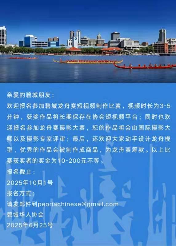 欢迎报名参加碧城龙舟赛短视频制作比赛! 06/25/2025