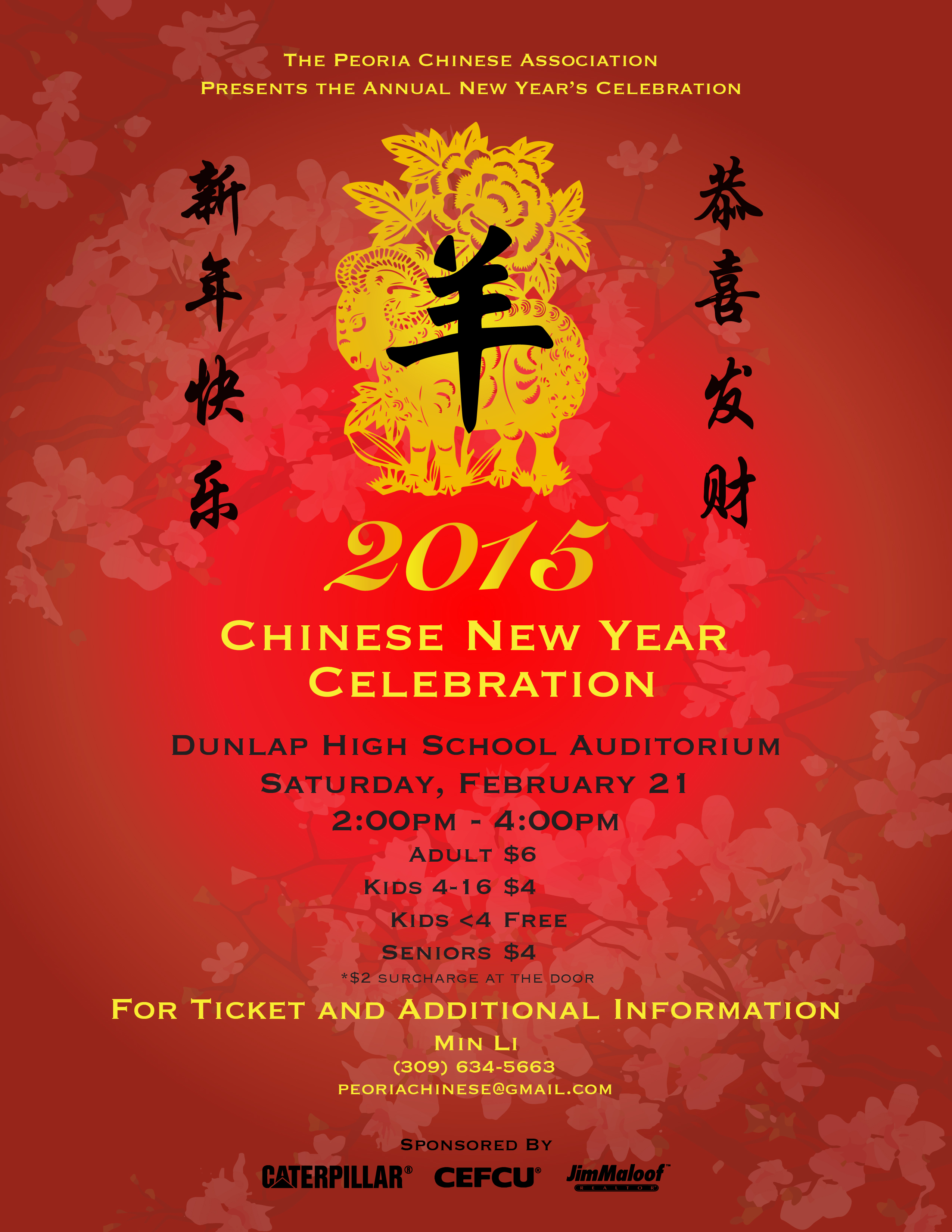 We are happy to announce that Peoria Chinese New Year celebration will be on Saturday, February 21, 2015, from 2-4pm, at Dunlap High School Auditorium.